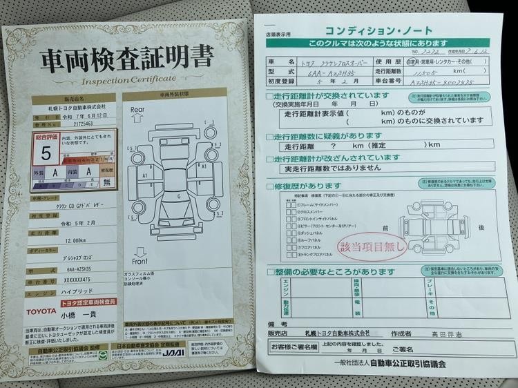 詳細及び現状の車両状態につきましては、店舗スタッフまでお尋ねください。 - 注2)上記と同様の評価点・状態表を「車両検査証明書」として店舗の展示車両に搭載しております。