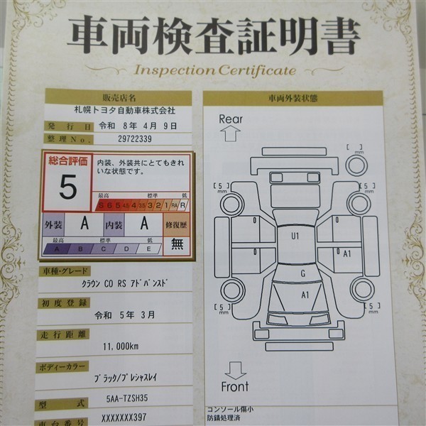 詳細及び現状の車両状態につきましては、店舗スタッフまでお尋ねください。 - 注2)上記と同様の評価点・状態表を「車両検査証明書」として店舗の展示車両に搭載しております。