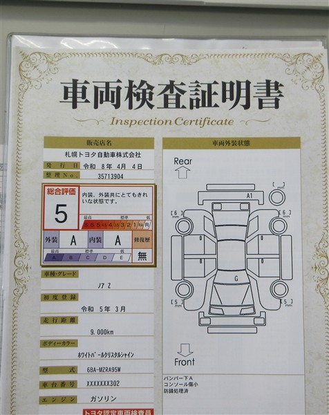 • 注2)上記と同様の評価点・状態表を「車両検査証明書」として店舗の展示車両に搭載しております。