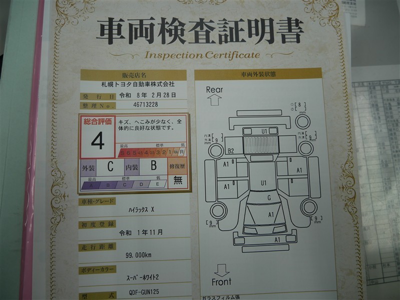 • 「修復歴あり」の場合、修復部位の詳細につきましては、販売店へお問合せください。