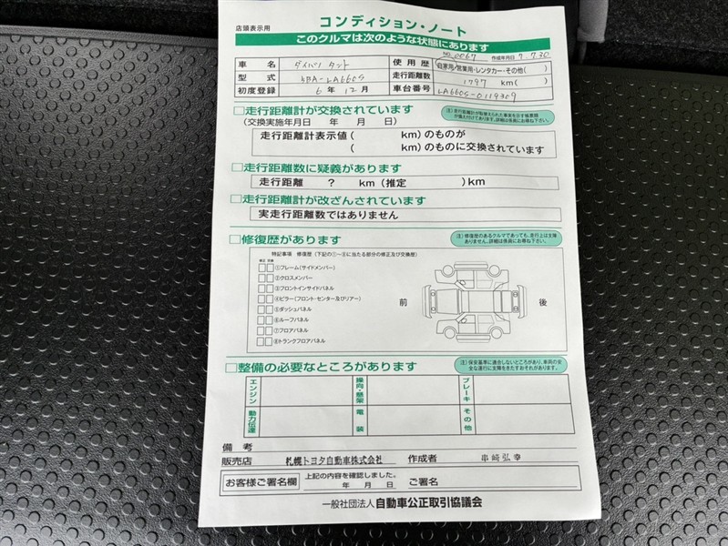 - 「修復歴あり」の場合、修復部位の詳細につきましては、販売店へお問合せください。