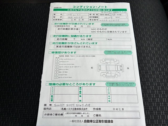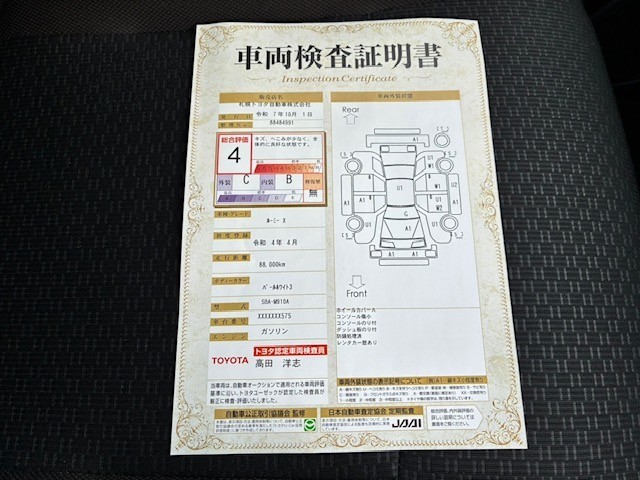 詳細及び現状の車両状態につきましては、店舗スタッフまでお尋ねください。 - 注2)上記と同様の評価点・状態表を「車両検査証明書」として店舗の展示車両に搭載しております。