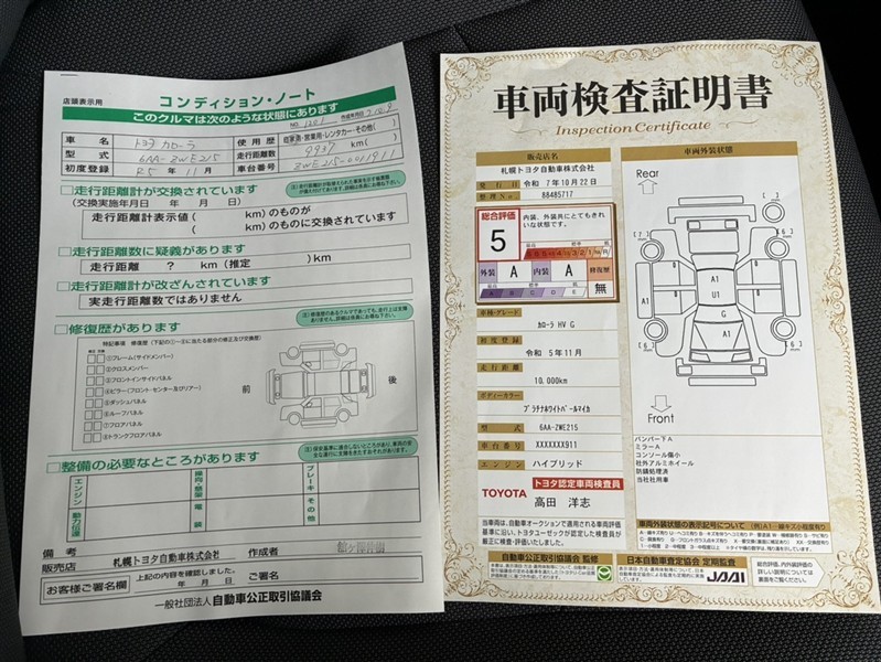 詳細及び現状の車両状態につきましては、店舗スタッフまでお尋ねください。 - 注2)上記と同様の評価点・状態表を「車両検査証明書」として店舗の展示車両に搭載しております。