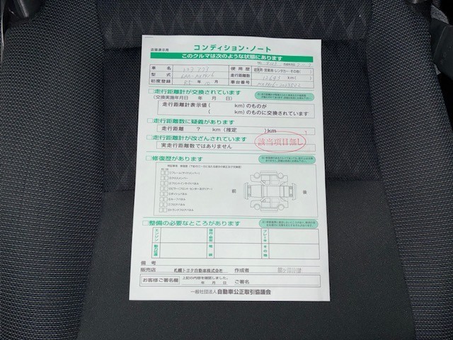 表示項目・方法・運用体制等について、自動車公正取引協議会の定める基準を満たした「トヨタU-Car品質評価制度」に基づき作成しております。