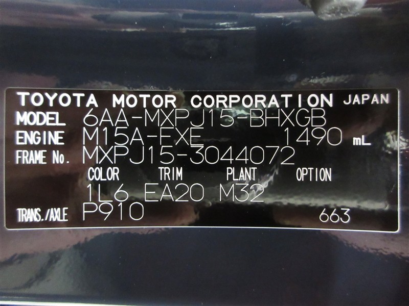 店舗管理ナンバー【022011045219】車台番号(下3桁)【072】