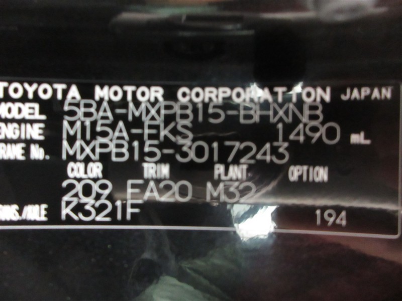 店舗管理ナンバー【022014617515】車台番号(下3桁)【243】