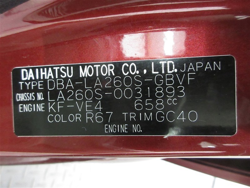 店舗管理ナンバー【022019287289】車台番号(下3桁)【893】