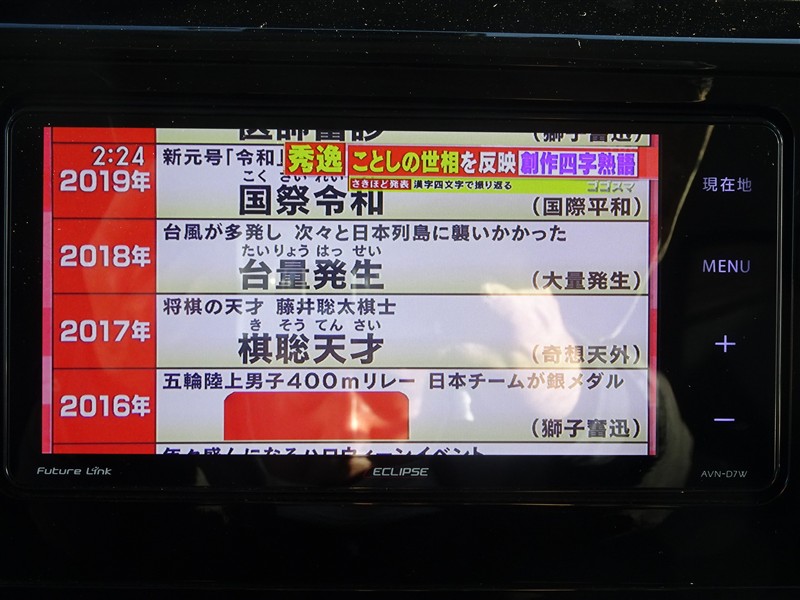 | カーナビ/DA | メモリーナビ(IN) またはナビ付きDA | TV | 地デジ(フルセグ) |