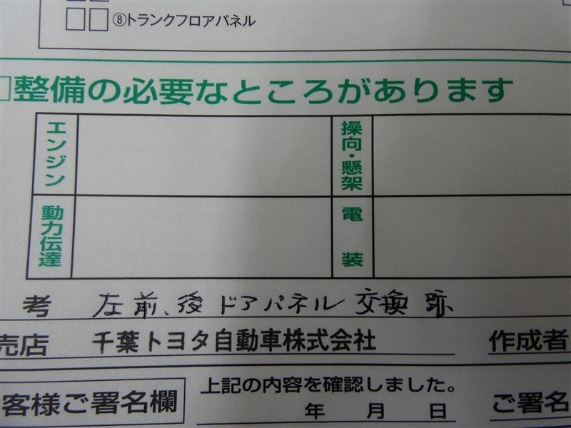 - 「定期点検整備なし(要整備箇所あり)」の場合、整備箇所につきましては、販売店へお問合せください。