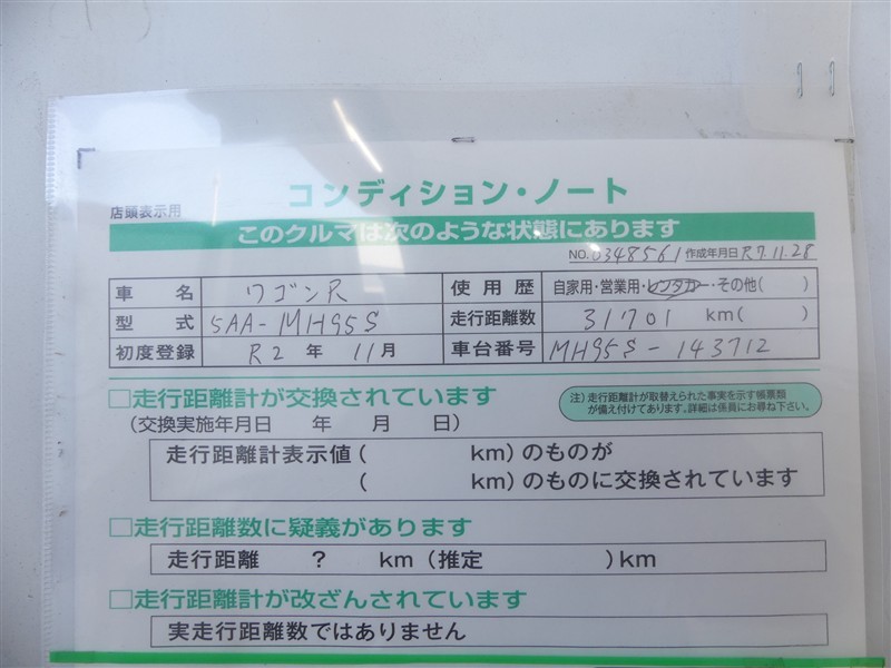 詳細及び現状の車両状態につきましては、店舗スタッフまでお尋ねください。 - 注2)上記と同様の評価点・状態表を「車両検査証明書」として店舗の展示車両に搭載しております。