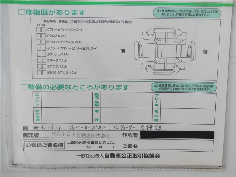 • 「修復歴あり」の場合、修復部位の詳細につきましては、販売店へお問合せください。