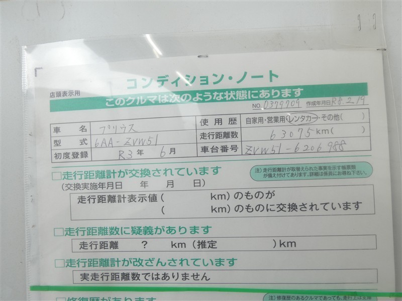走行距離 63,000km 使用歴 レンタカー