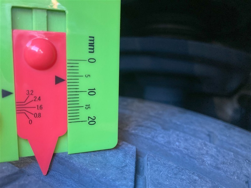 タイヤの横の数字は、残り溝を示しています。