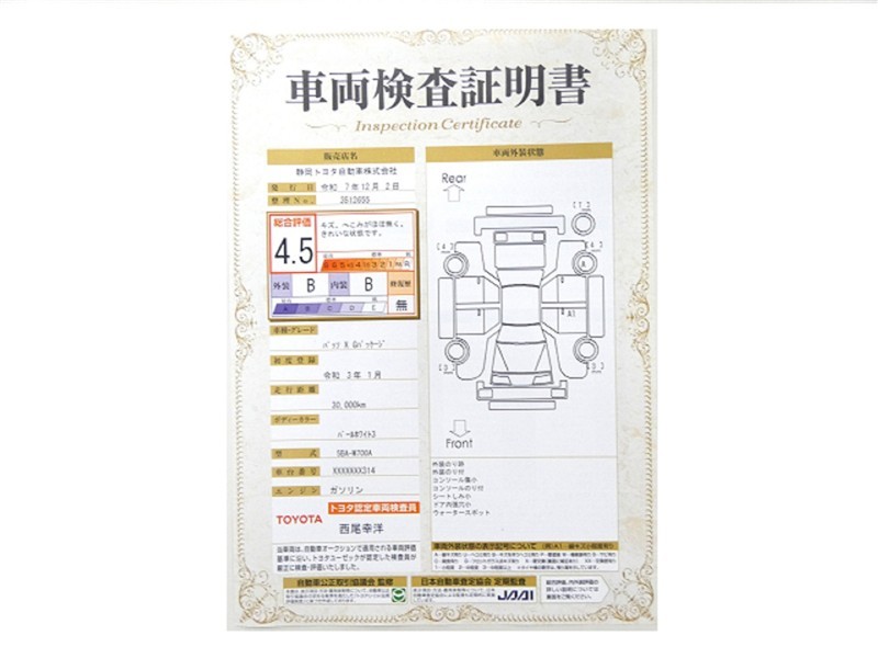 • 注1)本ページに掲載された評価は、車両検査実施時の車両状態を示したものです。