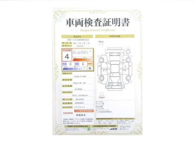 • 注2)上記と同様の評価点・状態表を「車両検査証明書」として店舗の展示車両に搭載しております。