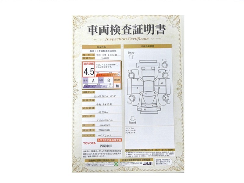• 注2)上記と同様の評価点・状態表を「車両検査証明書」として店舗の展示車両に搭載しております。