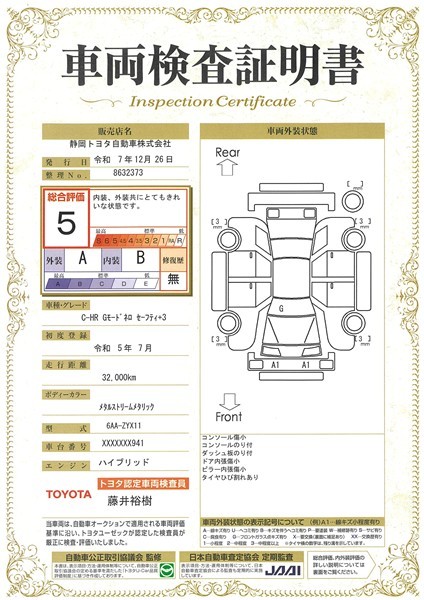 • 注1)本ページに掲載された評価は、車両検査実施時の車両状態を示したものです。