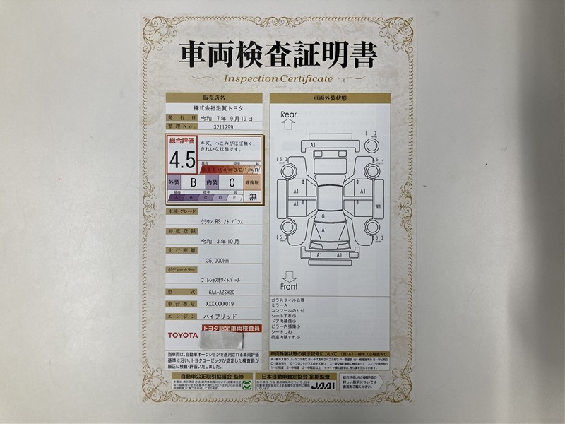 • 注1)本ページに掲載された評価は、車両検査実施時の車両状態を示したものです。
