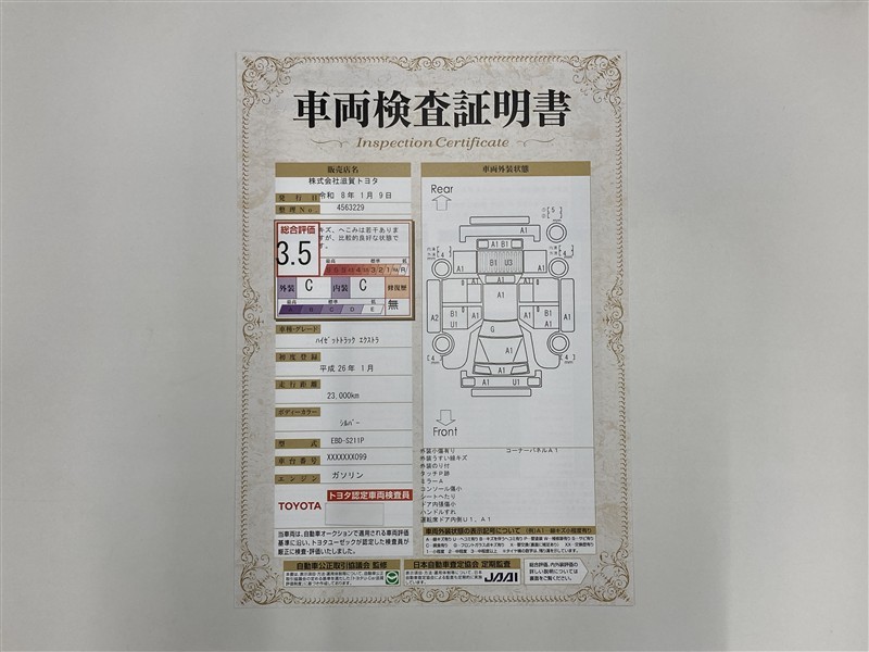 詳細及び現状の車両状態につきましては、店舗スタッフまでお尋ねください。 - 注2)上記と同様の評価点・状態表を「車両検査証明書」として店舗の展示車両に搭載しております。