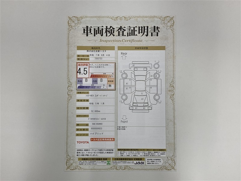 | 保証内容※1 | 保証付:ロングラン保証1年<走行距離無制限> +ハイブリッド保証<保証期間は初度登録年月から10年目まで、もしくは3年間のいずれか長い方。但し走行距離20万キロまで> |