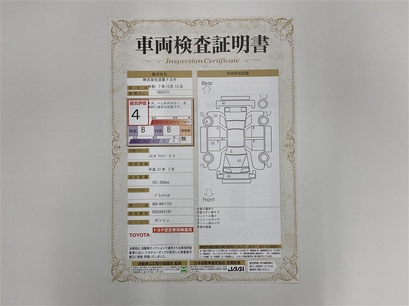 • 注2)上記と同様の評価点・状態表を「車両検査証明書」として店舗の展示車両に搭載しております。