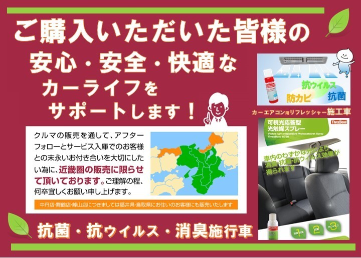 1:記載内容とは別に、距離・年式に応じて新車保証が付いている場合があります。詳細は販売店にお尋ねください。