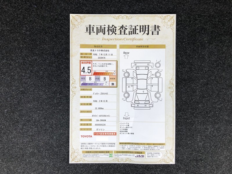 • 注1)本ページに掲載された評価は、車両検査実施時の車両状態を示したものです。