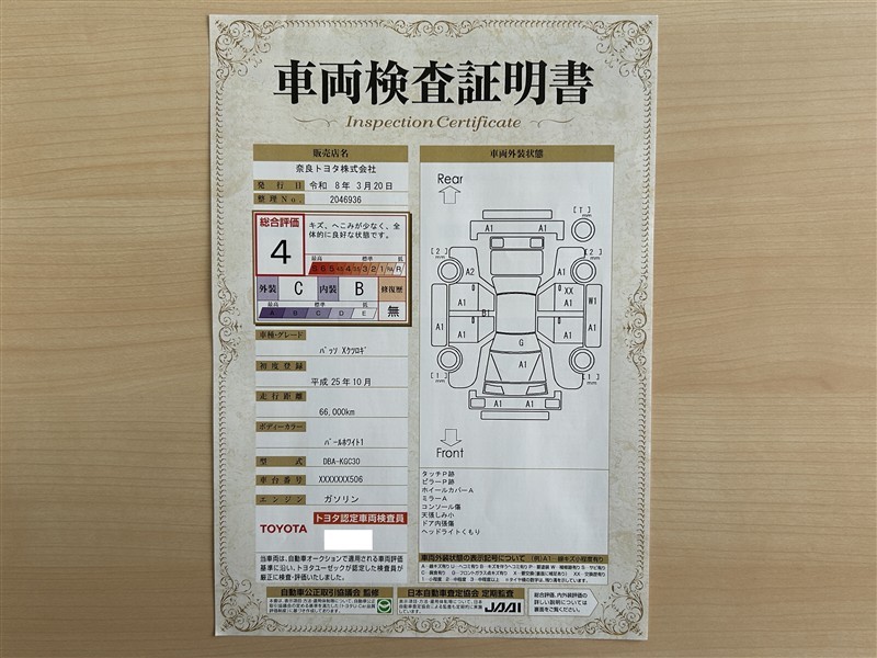 • 注2)上記と同様の評価点・状態表を「車両検査証明書」として店舗の展示車両に搭載しております。
