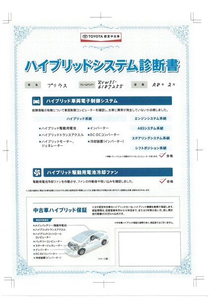 | 保証内容※1 | 保証付:ロングラン保証1年<走行距離無制限> +ハイブリッド保証<保証期間は初度登録年月から10年目まで、もしくは3年間のいずれか長い方。但し走行距離20万キロまで> |