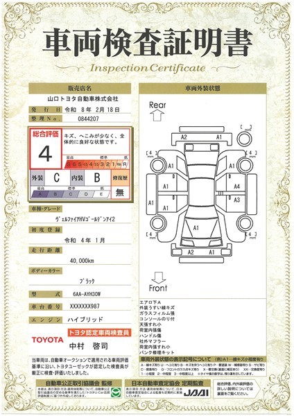 • 注1)本ページに掲載された評価は、車両検査実施時の車両状態を示したものです。