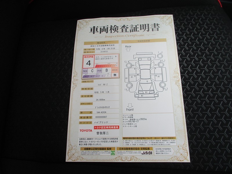 • 注2)上記と同様の評価点・状態表を「車両検査証明書」として店舗の展示車両に搭載しております。