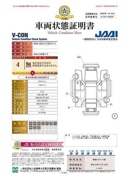 • 「定期点検整備なし(要整備箇所あり)」の場合、整備箇所につきましては、販売店へお問合せください。