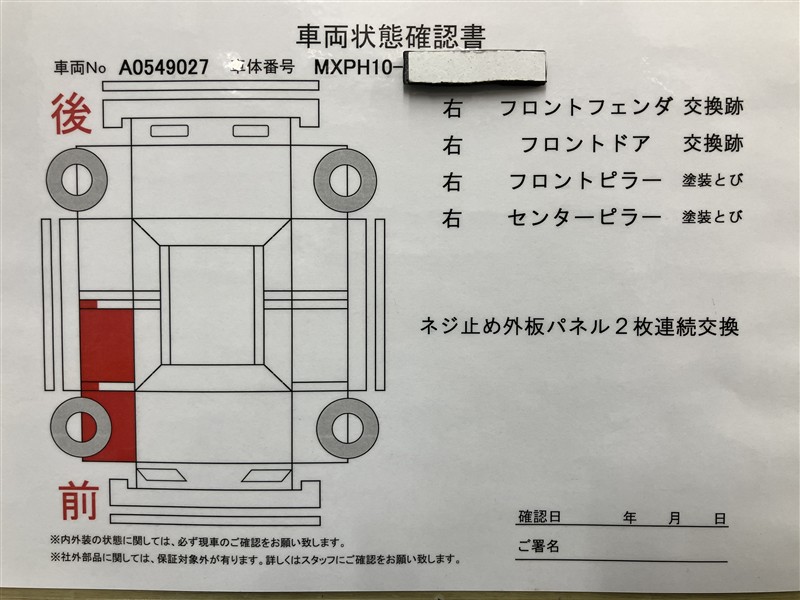 - 「修復歴あり」の場合、修復部位の詳細につきましては、販売店へお問合せください。