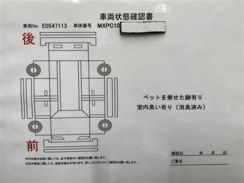 - 「定期点検整備なし(要整備箇所あり)」の場合、整備箇所につきましては、販売店へお問合せください。