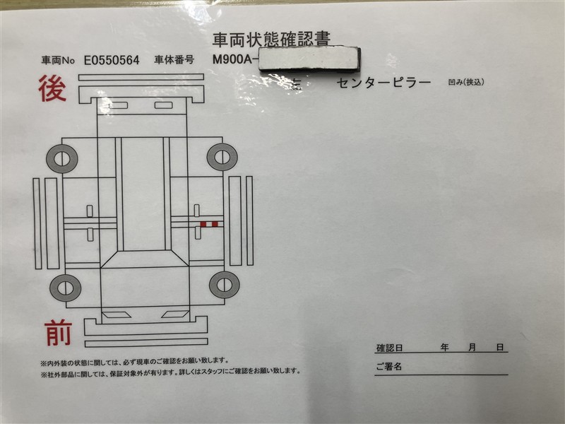 • 注2)上記と同様の評価点・状態表を「車両検査証明書」として店舗の展示車両に搭載しております。