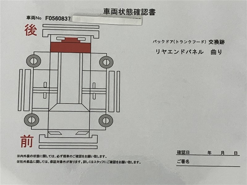 • 「修復歴あり」の場合、修復部位の詳細につきましては、販売店へお問合せください。