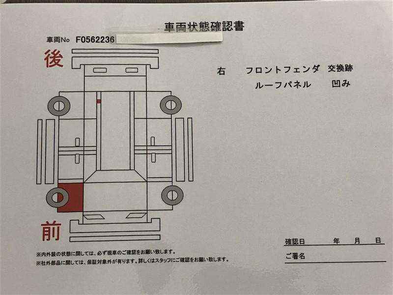 - 「修復歴あり」の場合、修復部位の詳細につきましては、販売店へお問合せください。