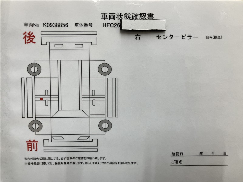 - 「定期点検整備なし(要整備箇所あり)」の場合、整備箇所につきましては、販売店へお問合せください。
