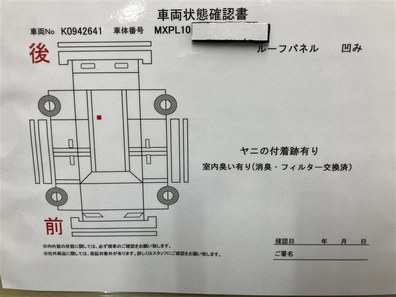 - 「定期点検整備なし(要整備箇所あり)」の場合、整備箇所につきましては、販売店へお問合せください。