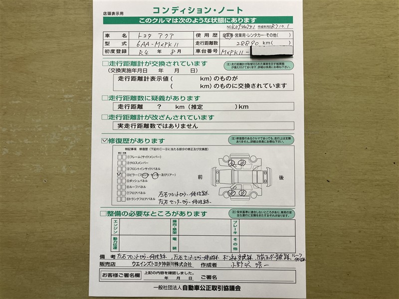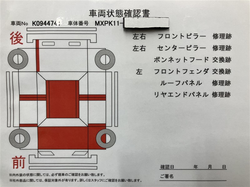 - 「修復歴あり」の場合、修復部位の詳細につきましては、販売店へお問合せください。