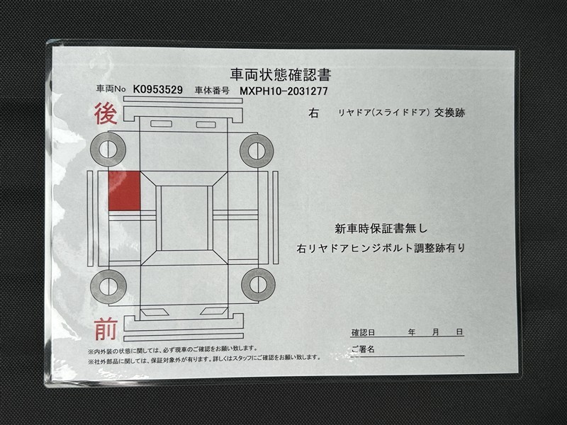 • 「定期点検整備なし(要整備箇所あり)」の場合、整備箇所につきましては、販売店へお問合せください。