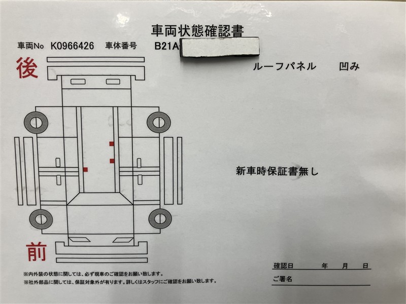 • 「定期点検整備なし(要整備箇所あり)」の場合、整備箇所につきましては、販売店へお問合せください。