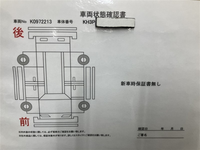 - 「定期点検整備なし(要整備箇所あり)」の場合、整備箇所につきましては、販売店へお問合せください。