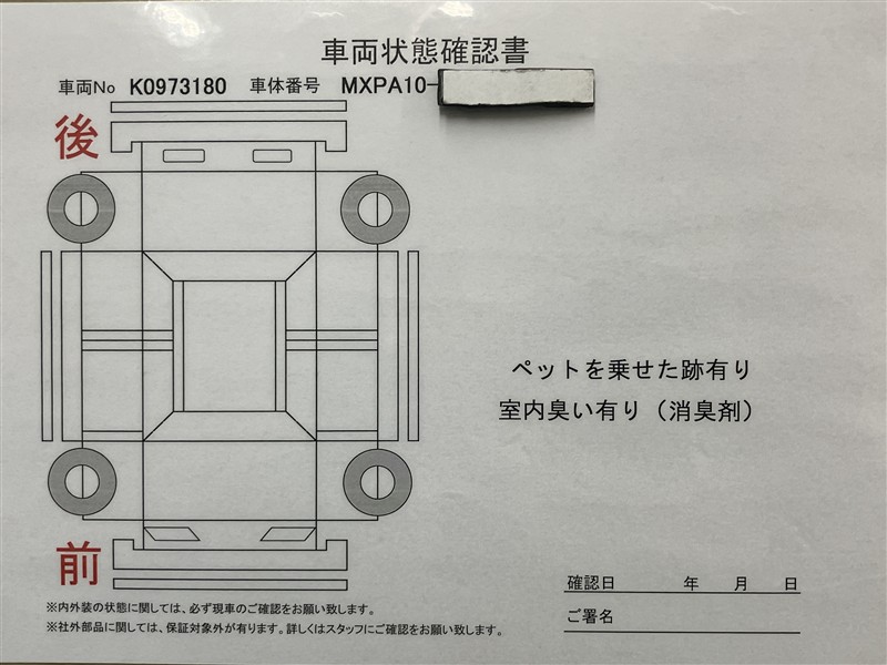 • 「定期点検整備なし(要整備箇所あり)」の場合、整備箇所につきましては、販売店へお問合せください。