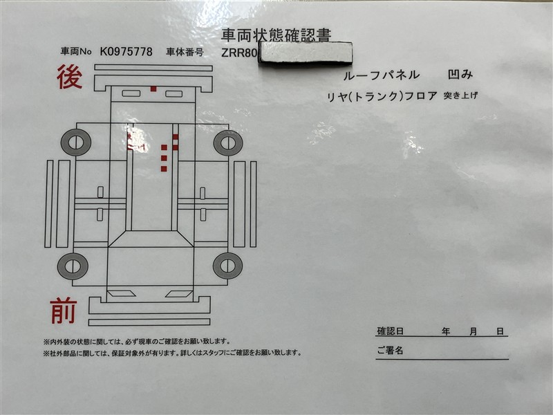 - 「修復歴あり」の場合、修復部位の詳細につきましては、販売店へお問合せください。