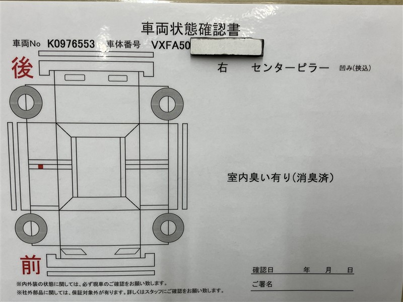 • 「定期点検整備なし(要整備箇所あり)」の場合、整備箇所につきましては、販売店へお問合せください。