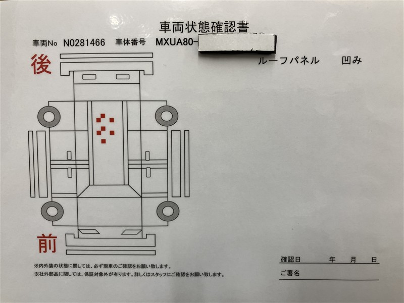 - 「定期点検整備なし(要整備箇所あり)」の場合、整備箇所につきましては、販売店へお問合せください。