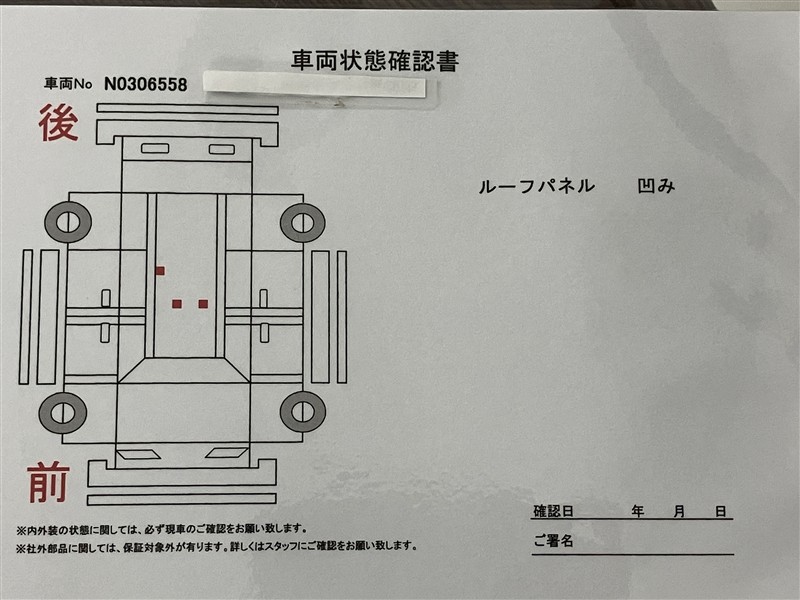 - 「定期点検整備なし(要整備箇所あり)」の場合、整備箇所につきましては、販売店へお問合せください。