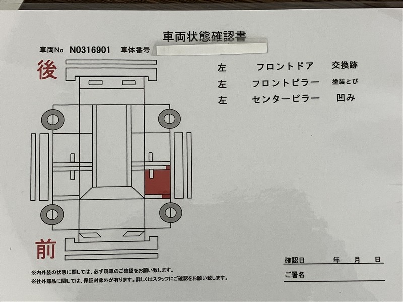 • 「定期点検整備なし(要整備箇所あり)」の場合、整備箇所につきましては、販売店へお問合せください。