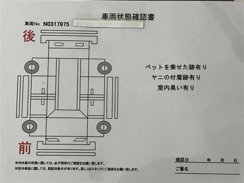 - 「定期点検整備なし(要整備箇所あり)」の場合、整備箇所につきましては、販売店へお問合せください。